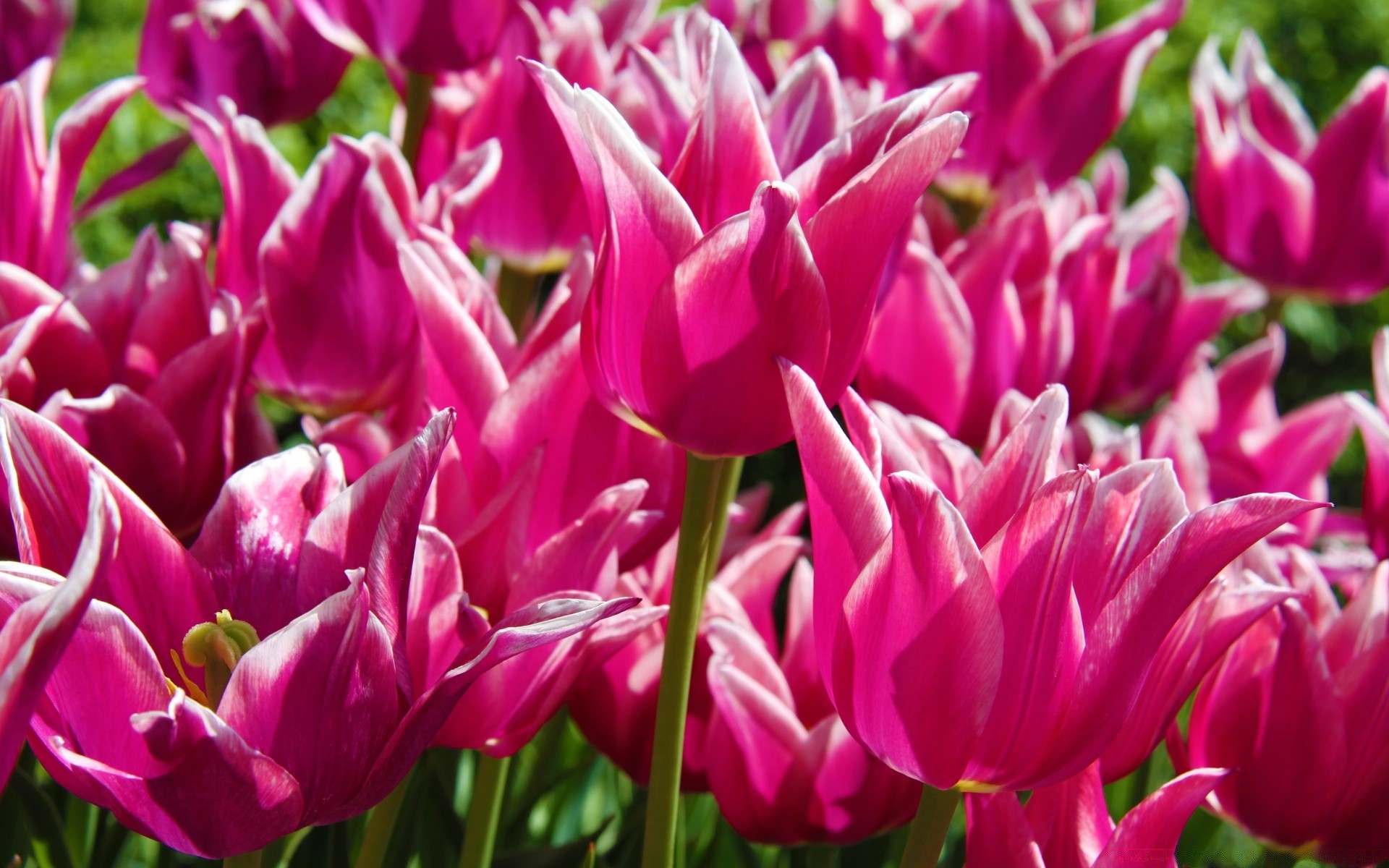Schöne rosa tulpen im blumenbeet