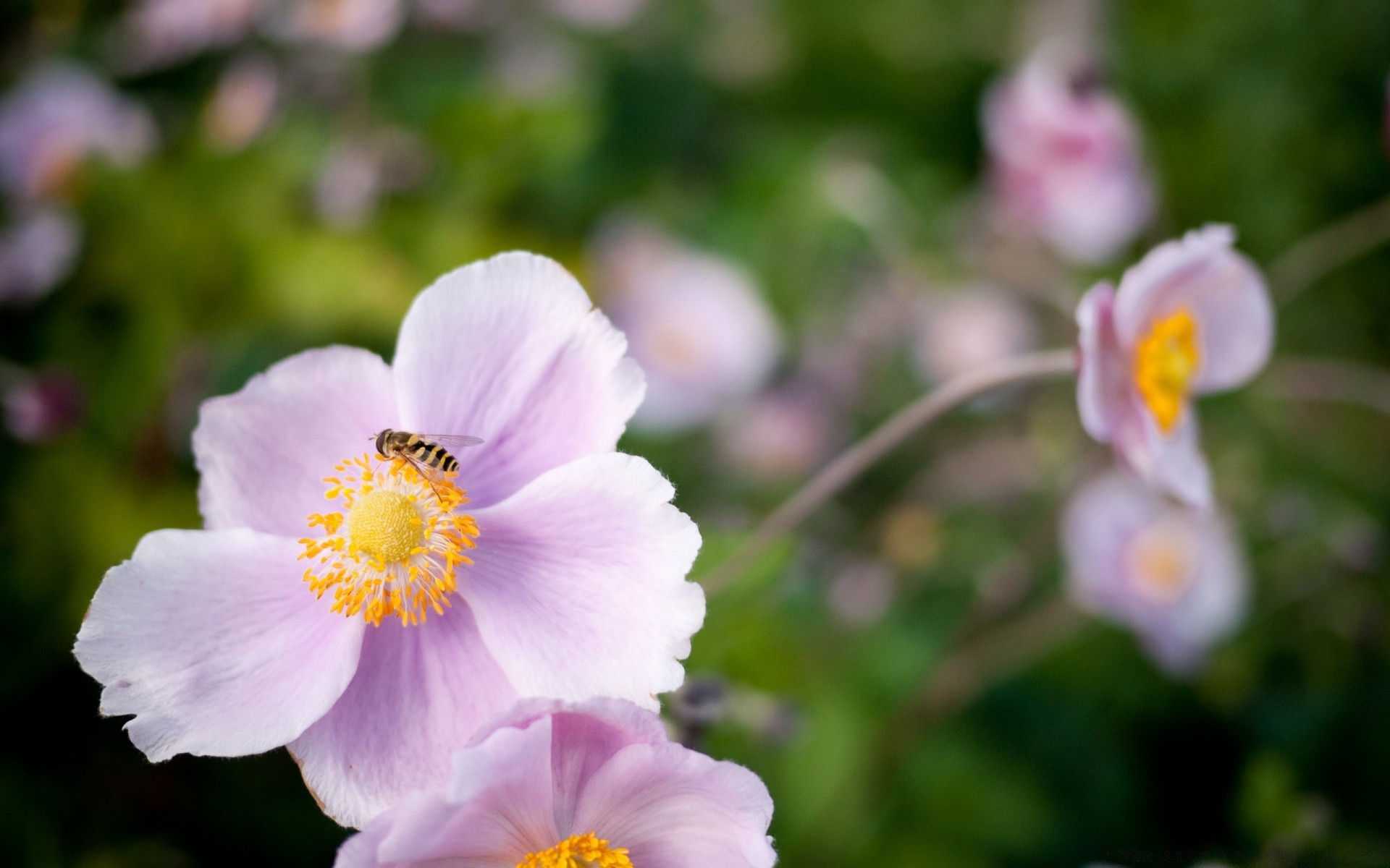 Zartes Bild in rosa Farbtönen mit einer Biene