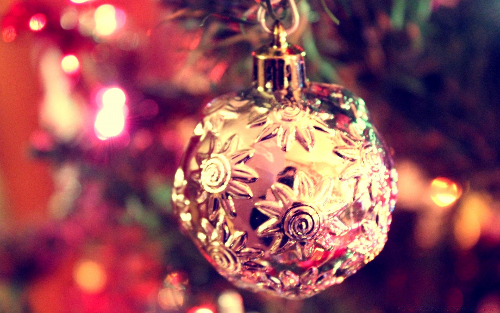 Geschnitzte rote Weihnachtskugel am Weihnachtsbaum