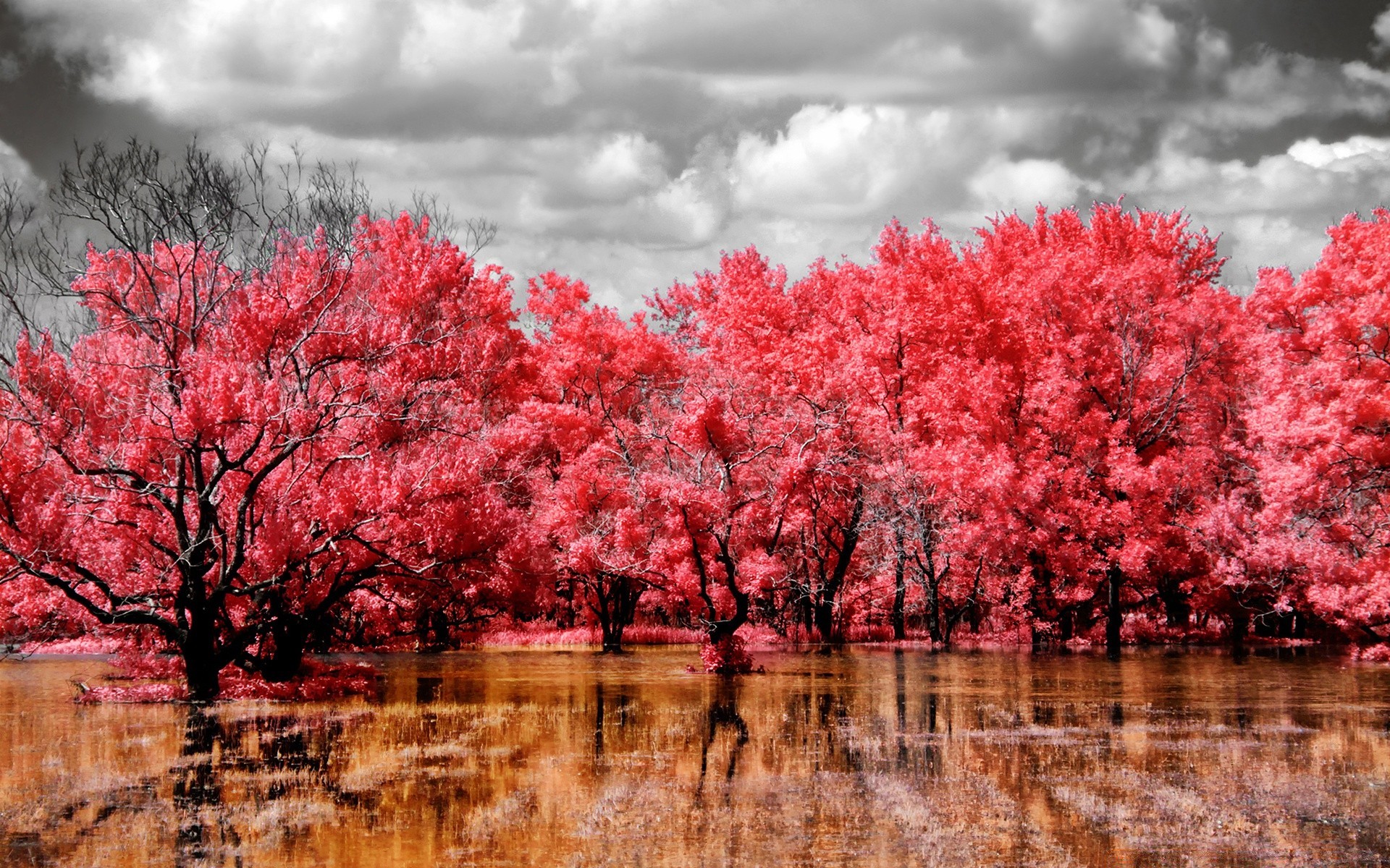 Das rote Auto spiegelt sich in der Pfütze Schwarzweiß wider