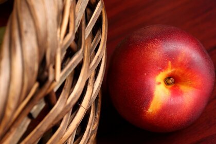 Saftige rote Nektarine am Korb auf dem Tisch