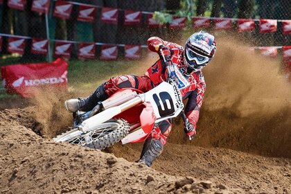 Das rote Motorrad strebt zum Sieg an