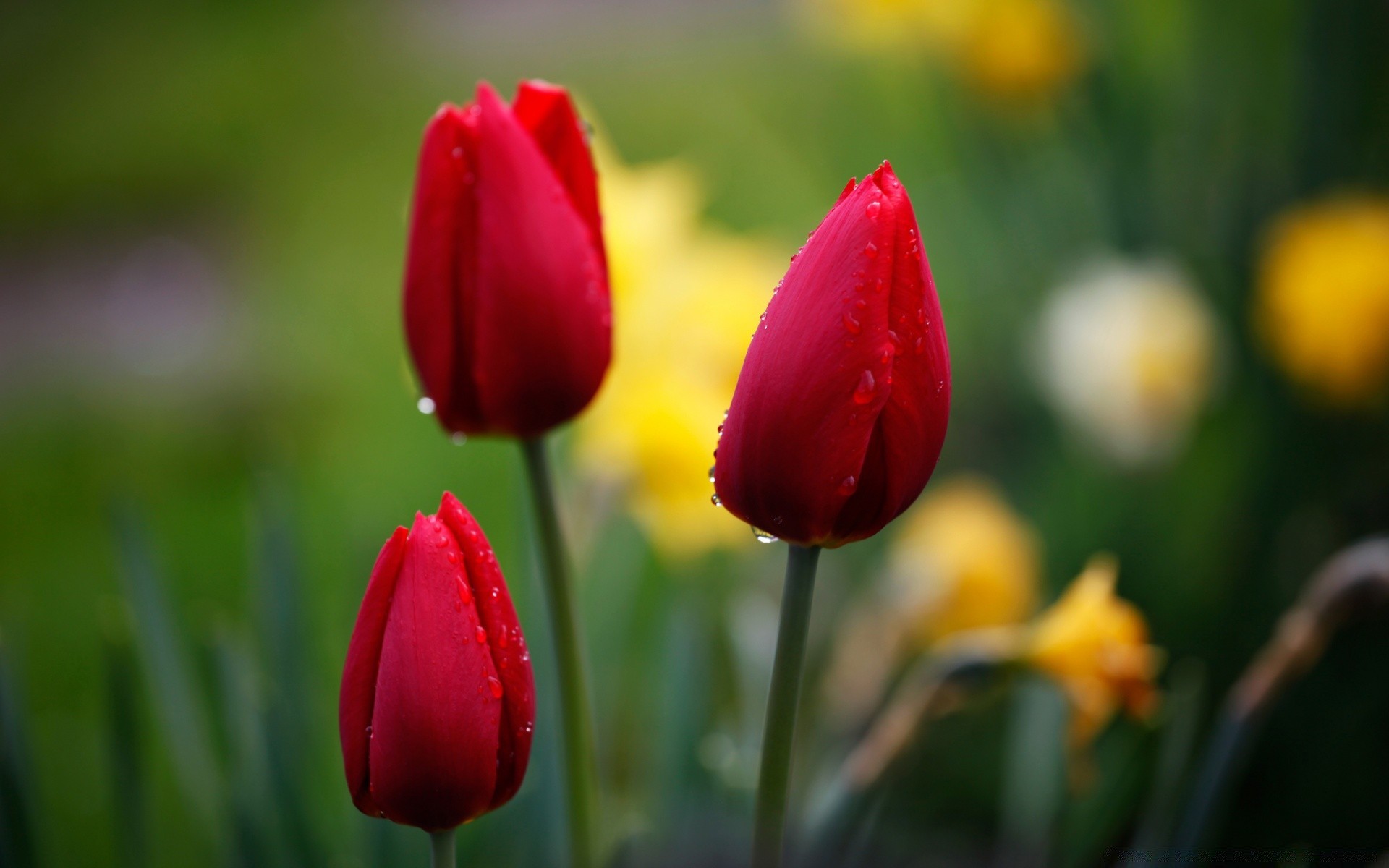 Rote Tulpen und gelbe Narzissen
