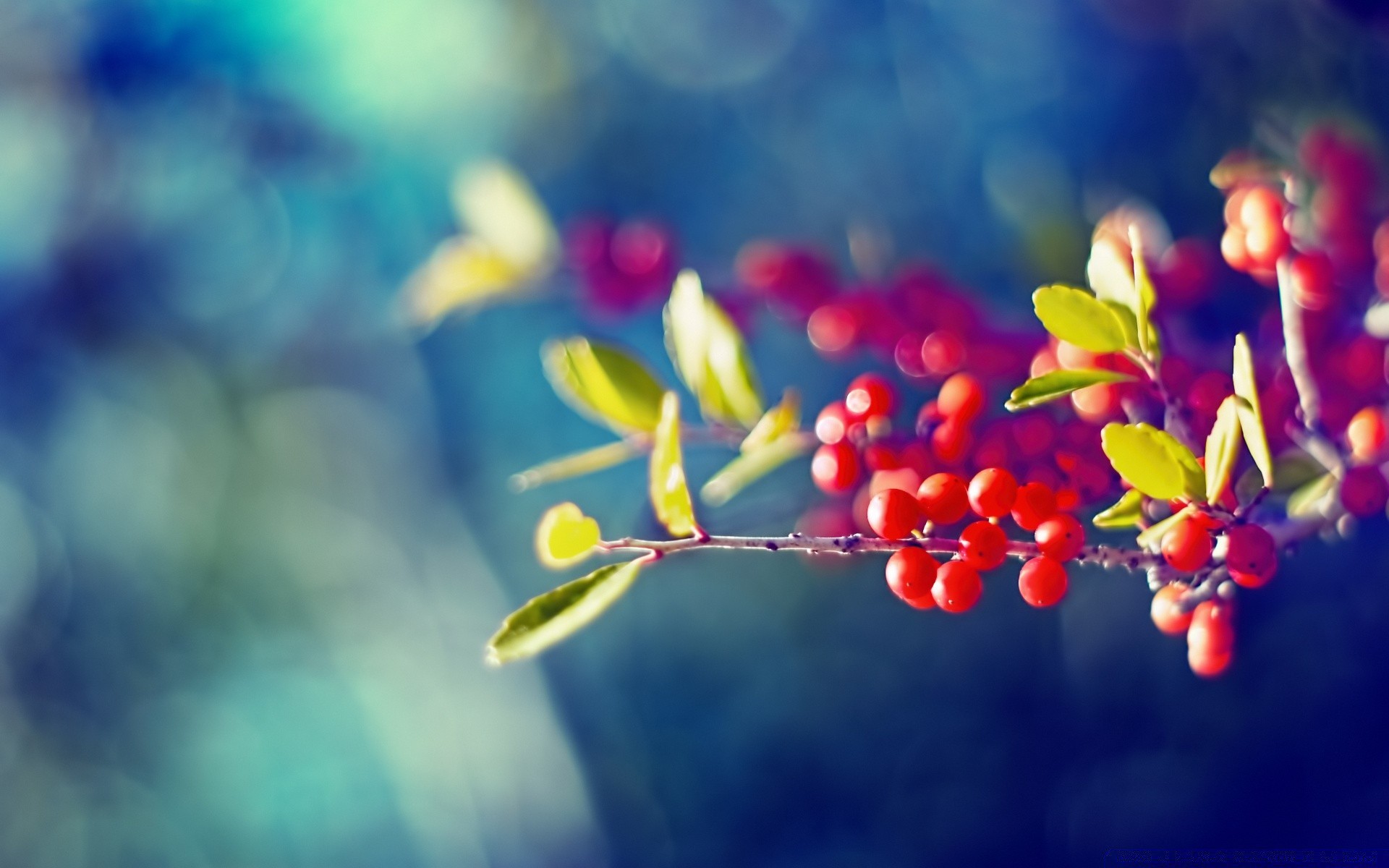 Rote Baumfrucht auf verschwommenem Hintergrund