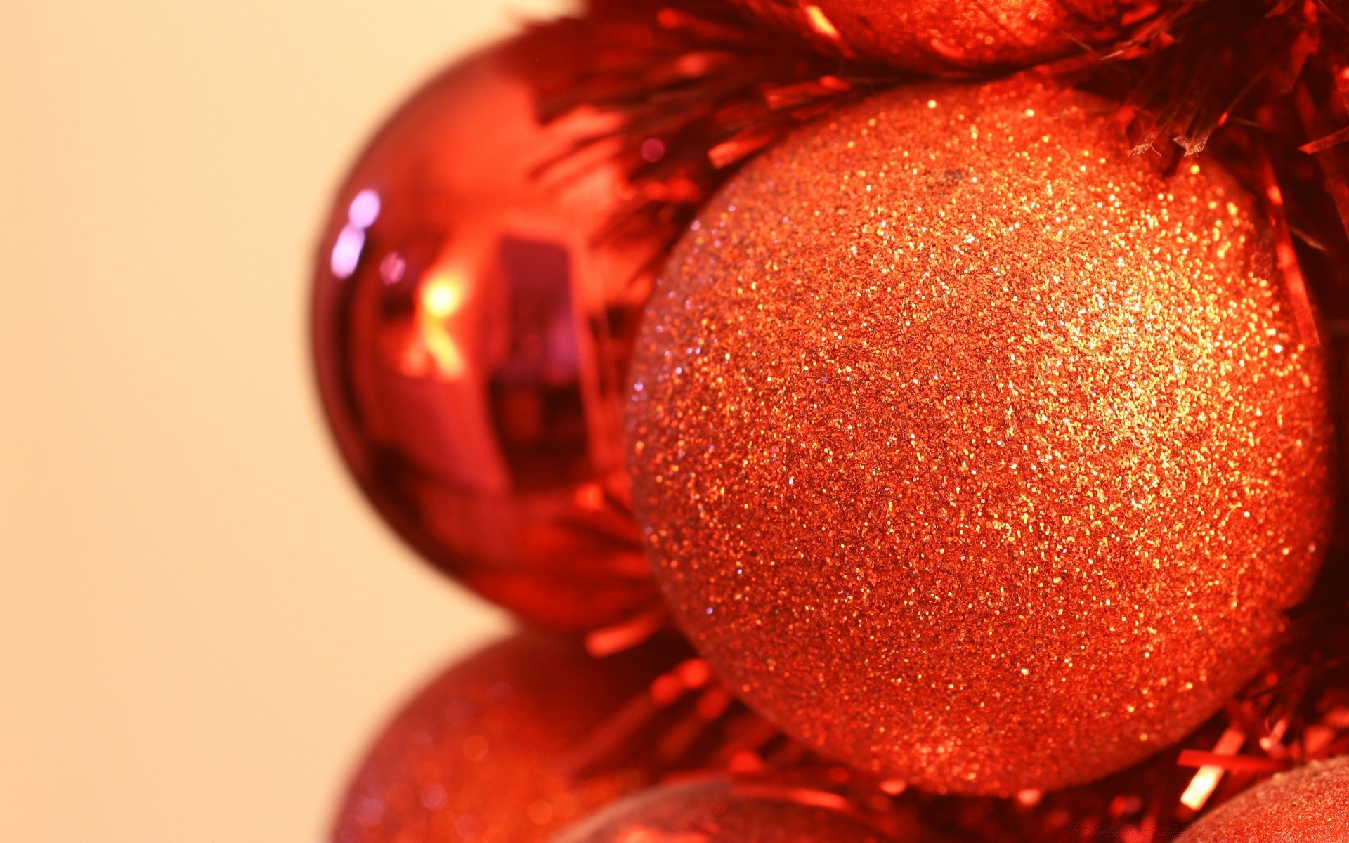 Weihnachtsschmuck am Weihnachtsbaum. Rote Kugeln
