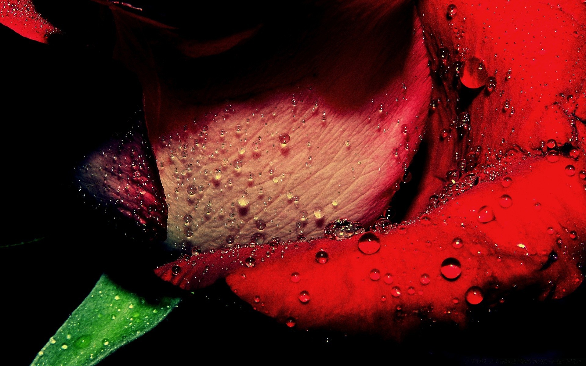 Eine kleine, blühende rote Blume unter noch nicht entflammten Knospen auf grünem Hintergrund