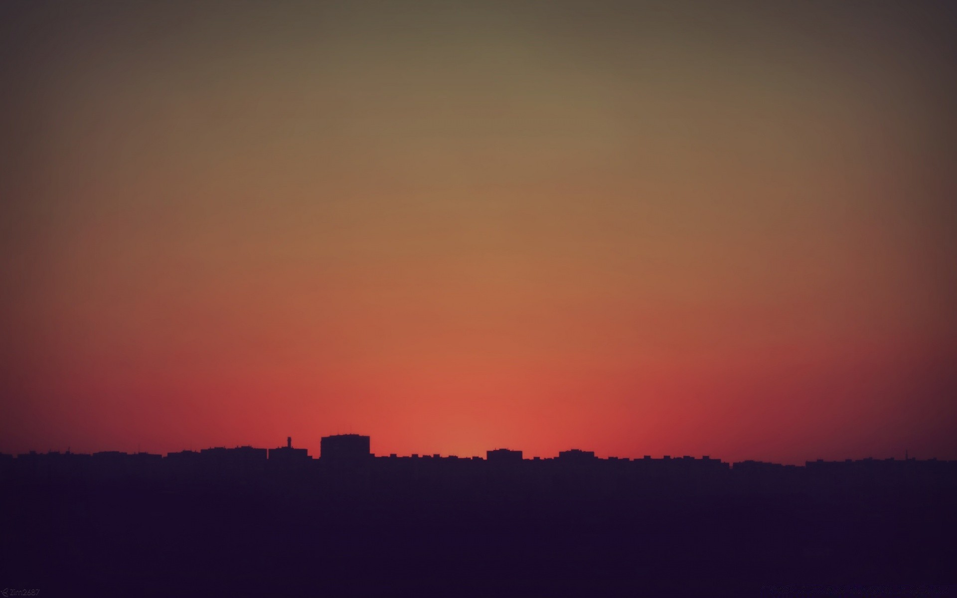 Roter Sonnenuntergang. Gebäude in der Ferne