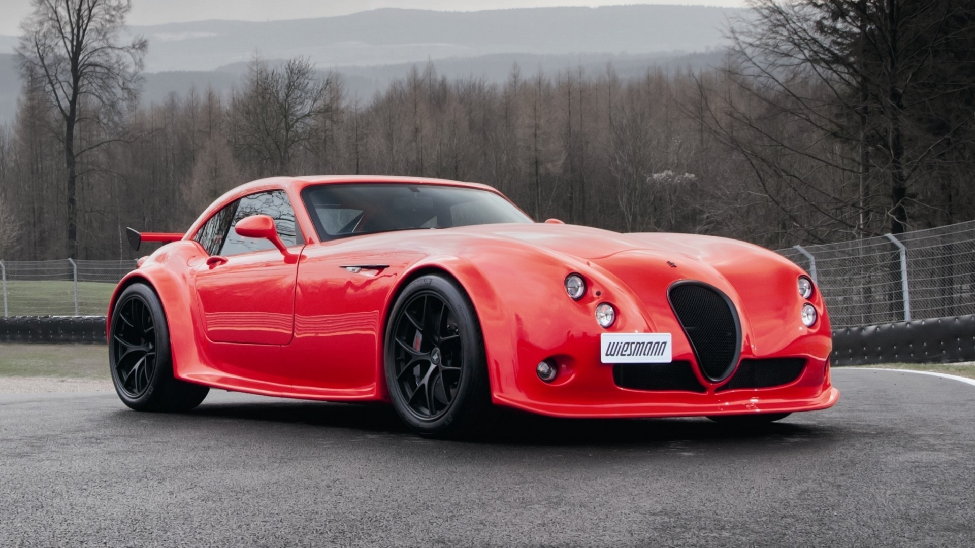 Ein roter Sportwagen rast über die auf dem Foto verschwommene Strecke