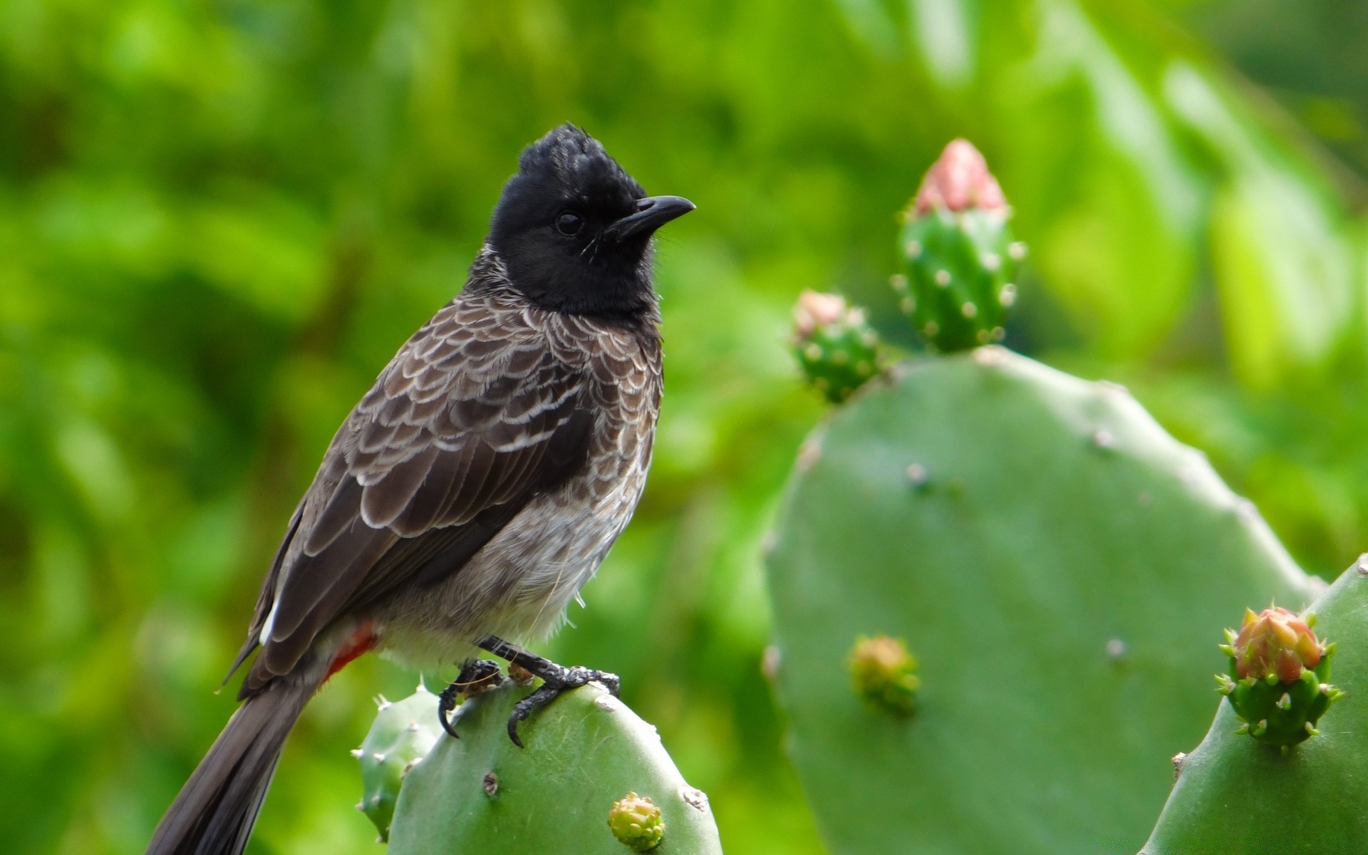 Ein kleiner Vogel sitzt auf einem Strauchzweig mit roten Beeren