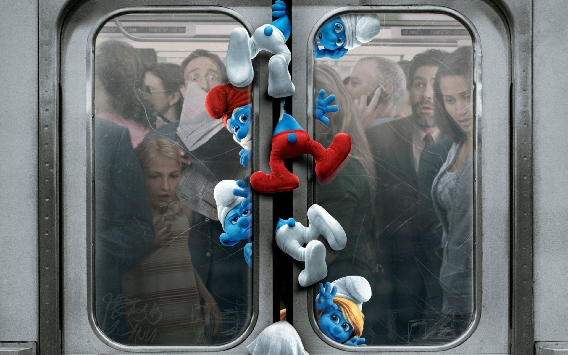 Zeichentrickfiguren stecken in der U-Bahn-Tür fest