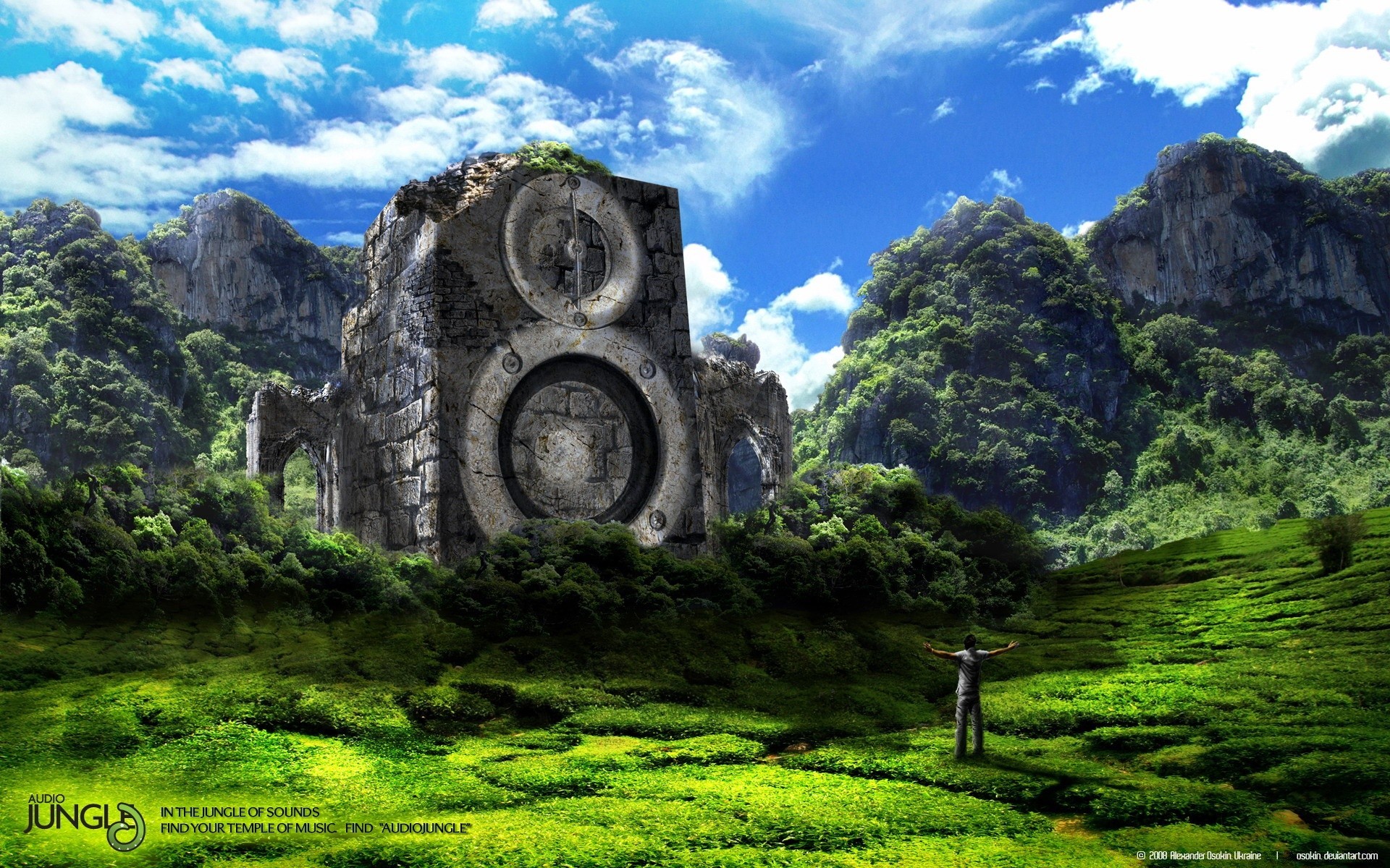 Kreative Landschaft. Ein Berg in Form einer riesigen Musikspalte