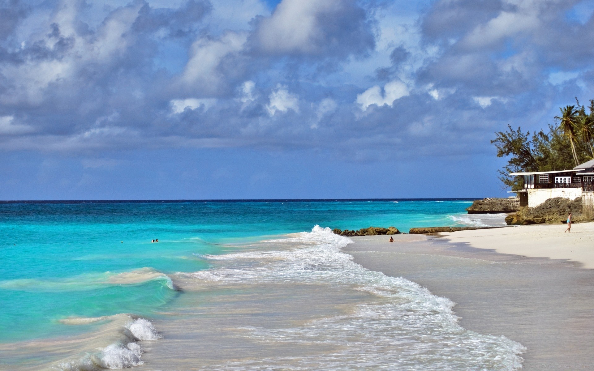 Palme am Ufer aus hellem Sand
