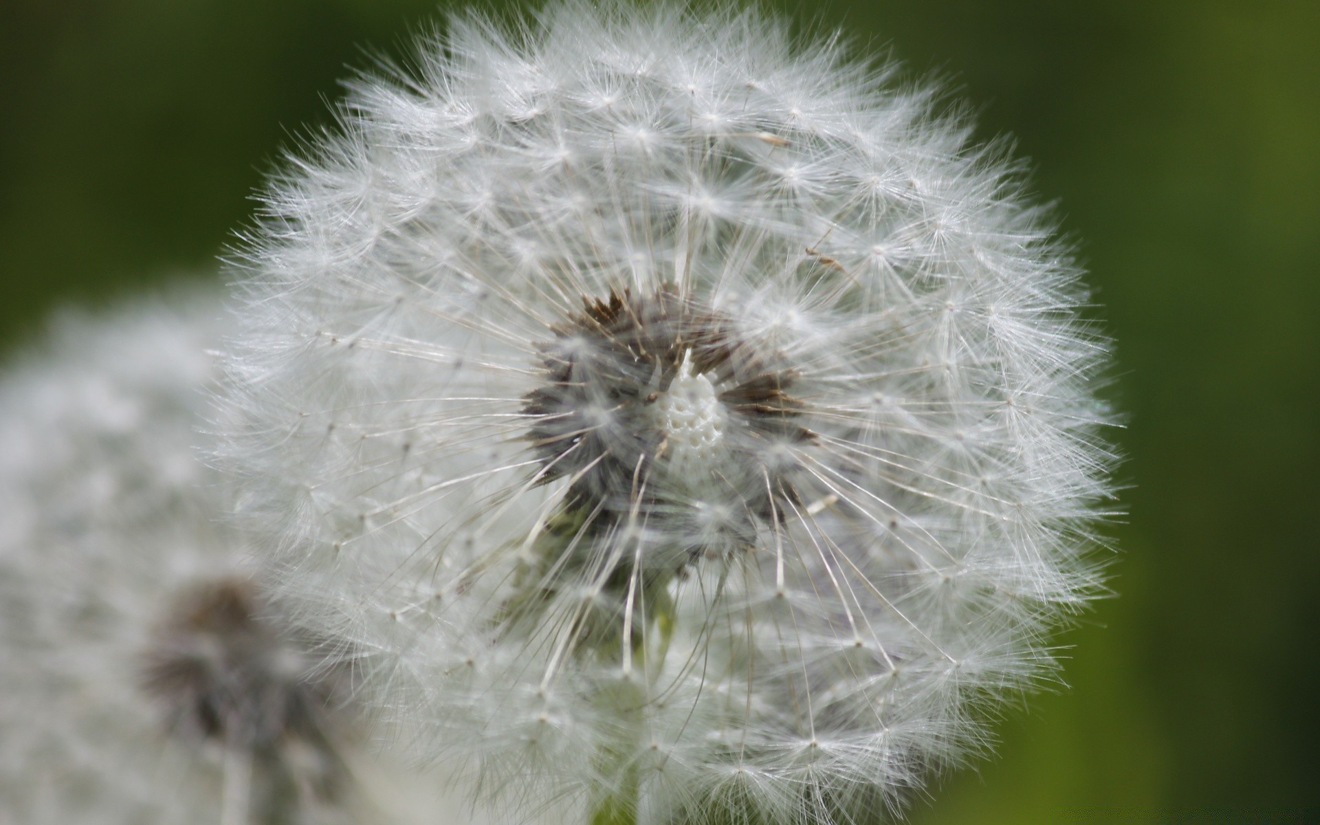 Fast umherfliegender löwenzahn auf schwarzem und grünem hintergrundFast umherfliegender Löwenzahn auf schwarzem und grünem Hintergrund