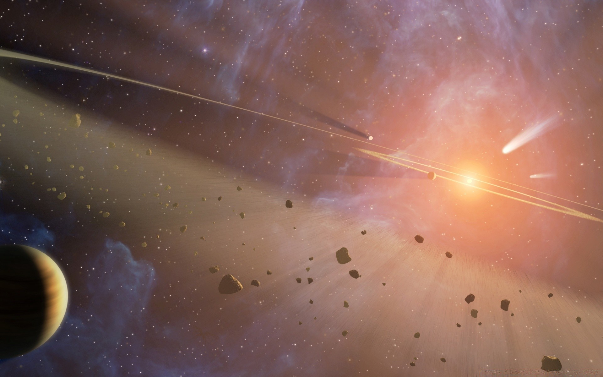 Weltraumschrott, der in Richtung des Planeten fliegt