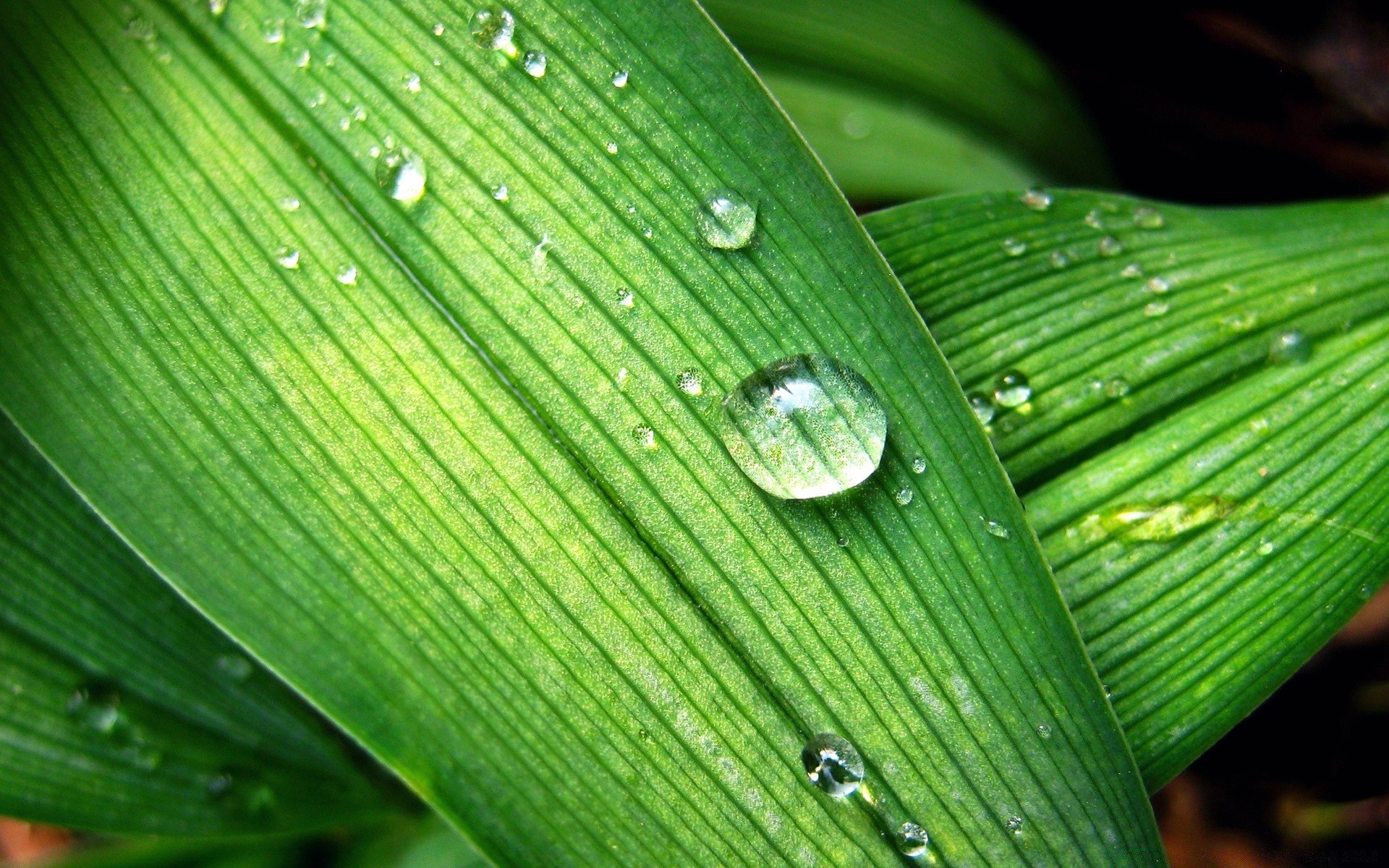 Makroaufnahme von grünem Gras mit Tautropfen verziert