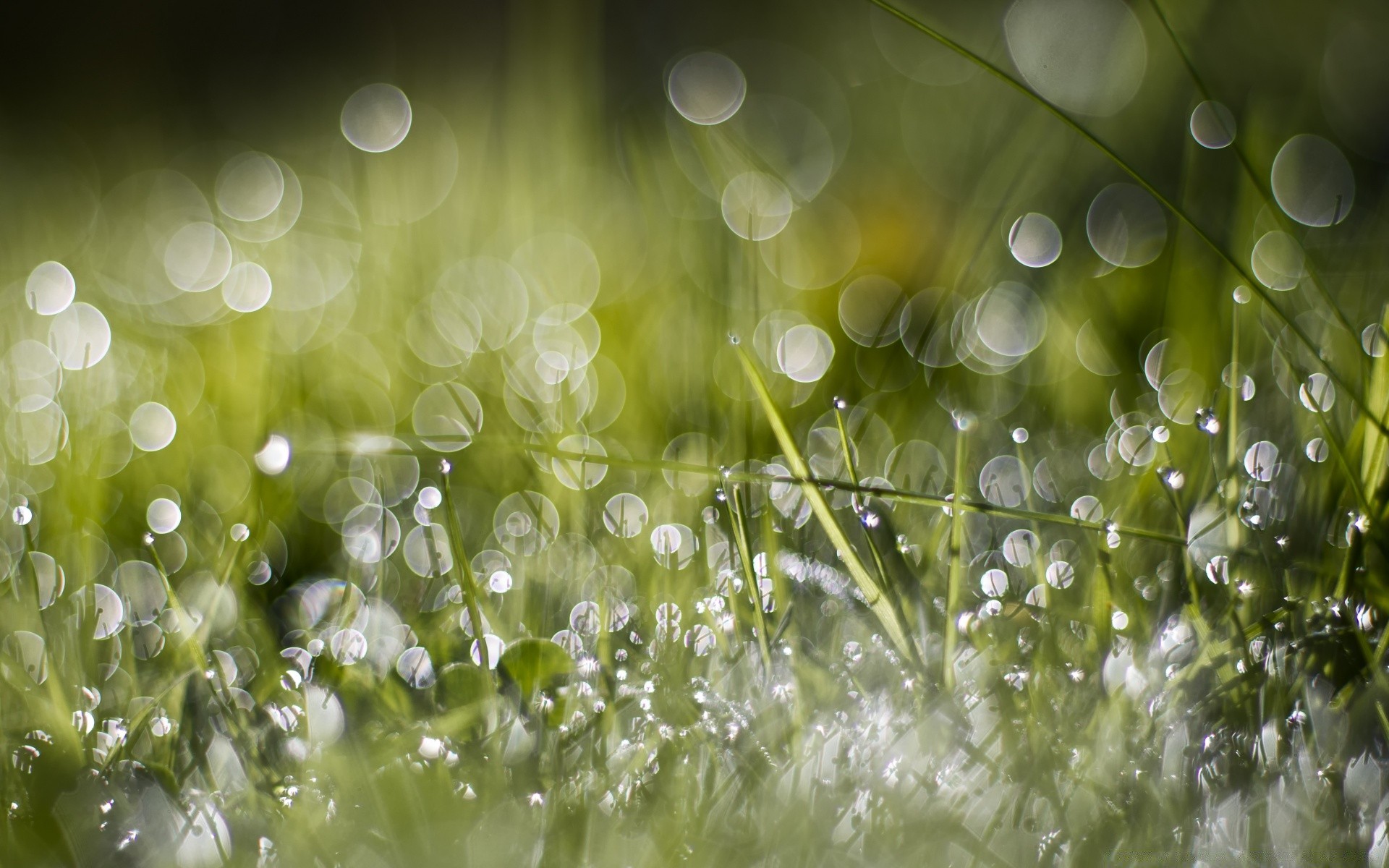Regentropfen im grünen Gras