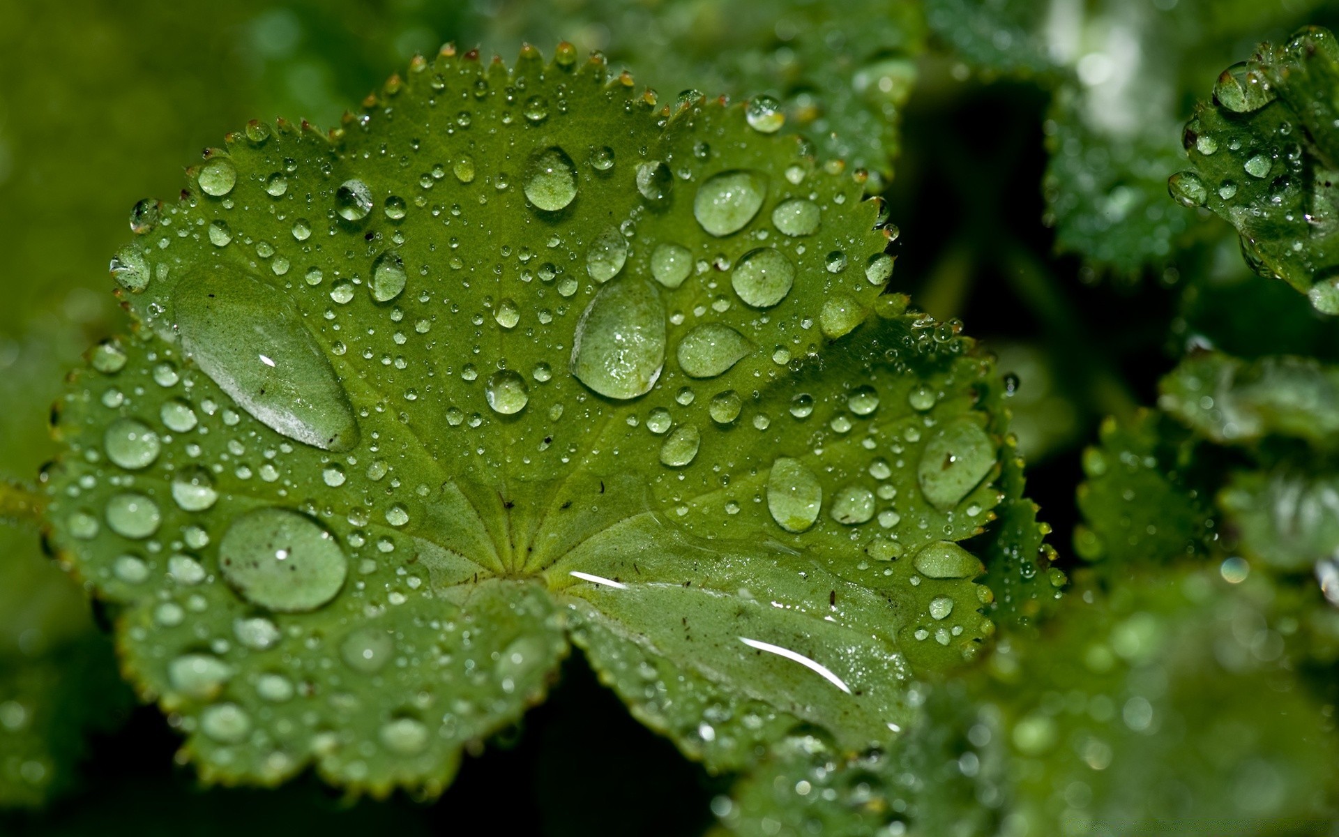 Tautropfen auf einem grünen Blatt