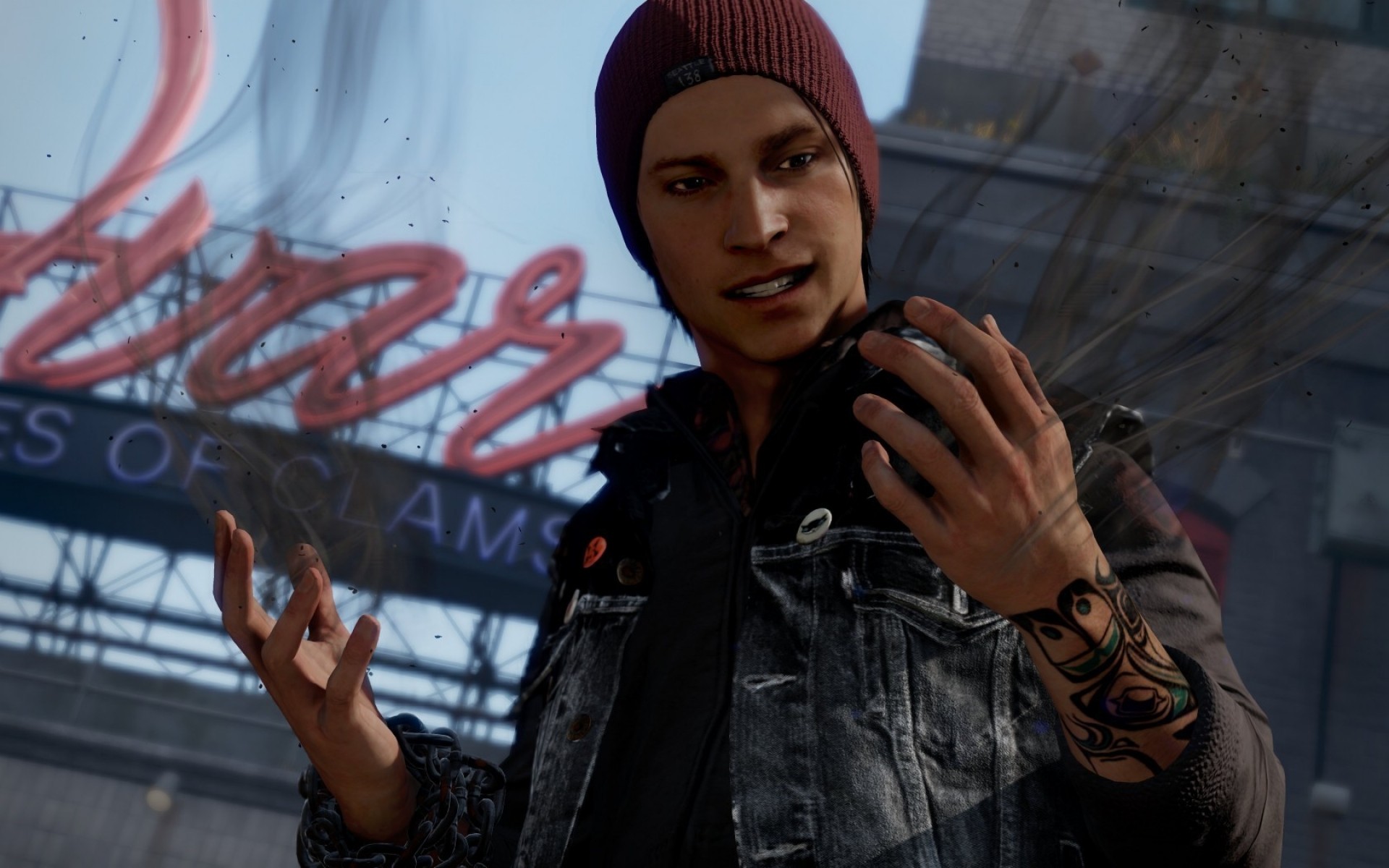 Ein Gebäude, das von einer Explosion auf ein Monster zerbröckelt