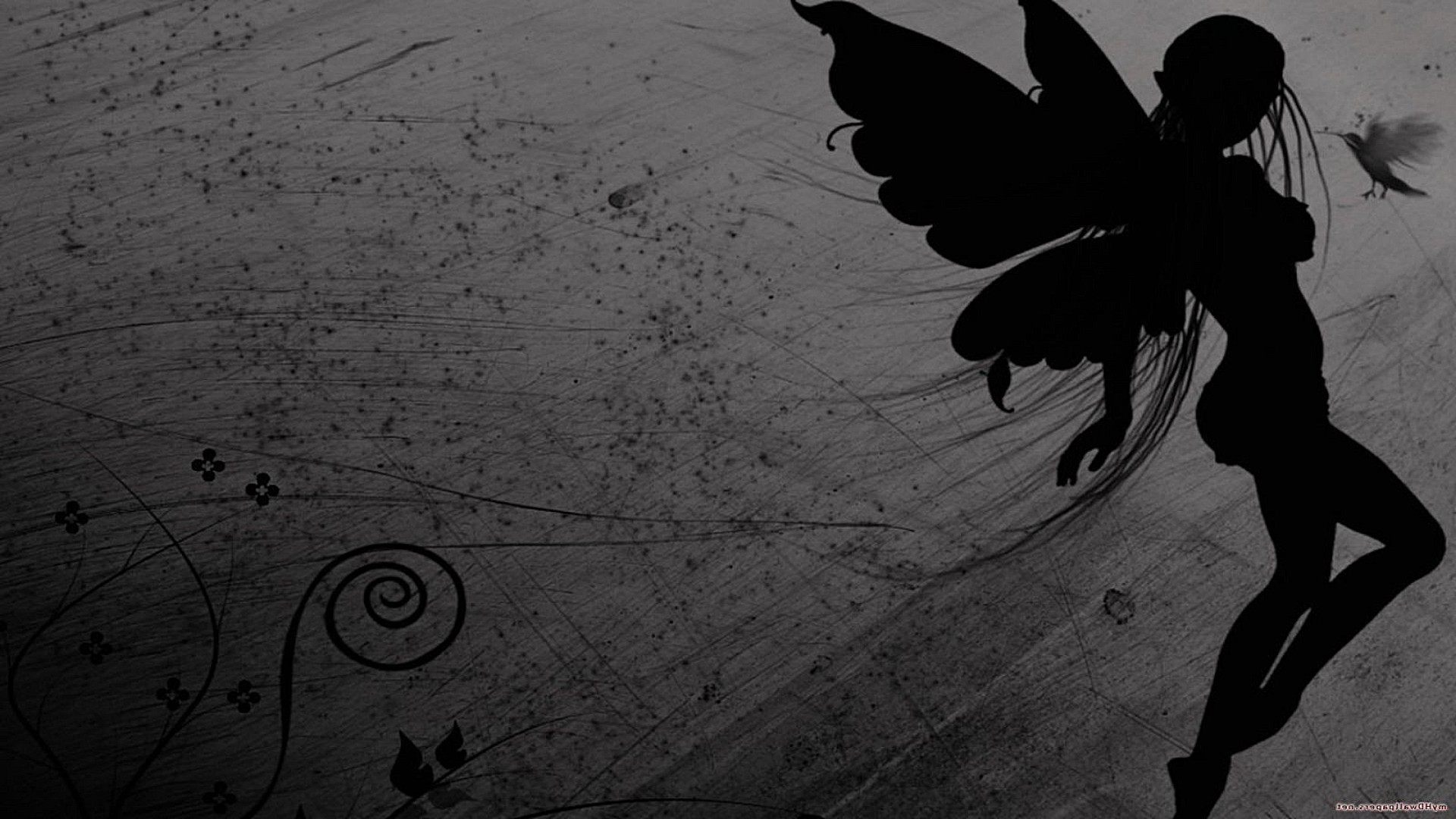 Silhouette einer Fee und eines Kolibris auf dem Desktop
