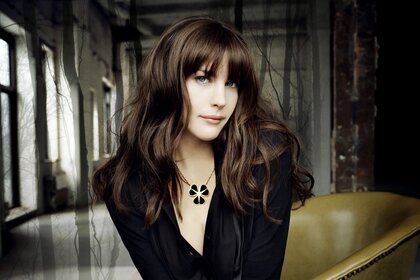 Eine frau in einer relaxpose auf einem weißen stuhlEine Frau in einer Relaxpose auf einem weißen Stuhl