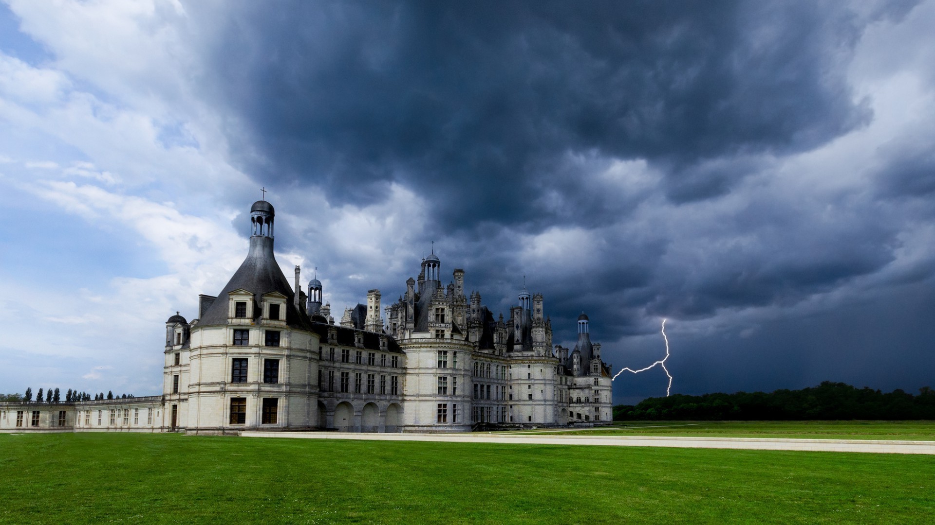 Mittelalterliche Burg unter Gewitterwolken