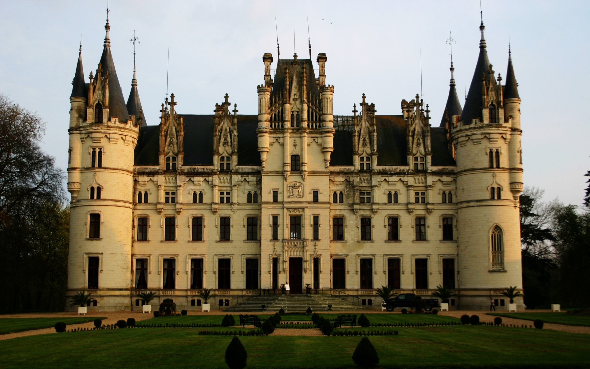Die architektur des schlosses mit dem turm in frankreichDie Architektur des Schlosses mit dem Turm in Frankreich
