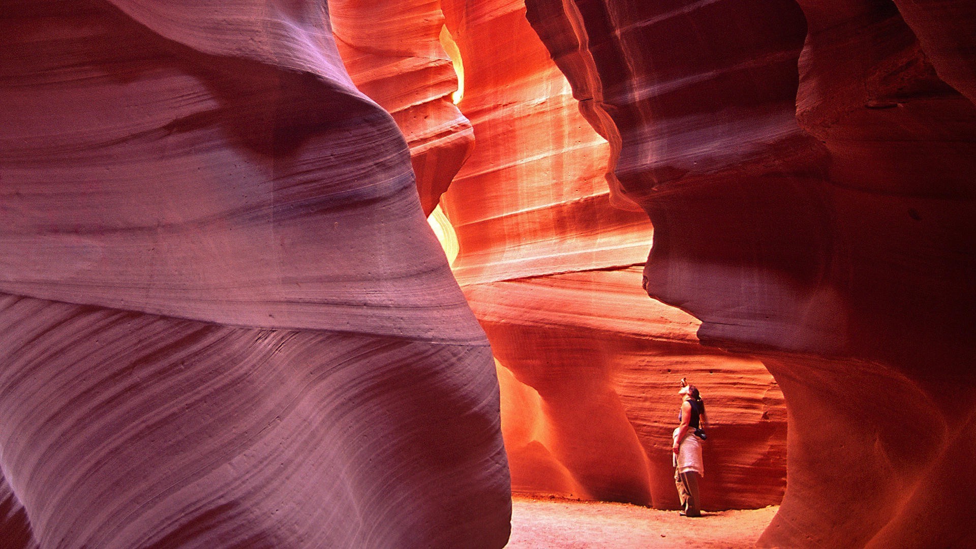 Ein mädchen in einer höhle, durch die die sonne sickertEin Mädchen in einer Höhle, durch die die Sonne sickert