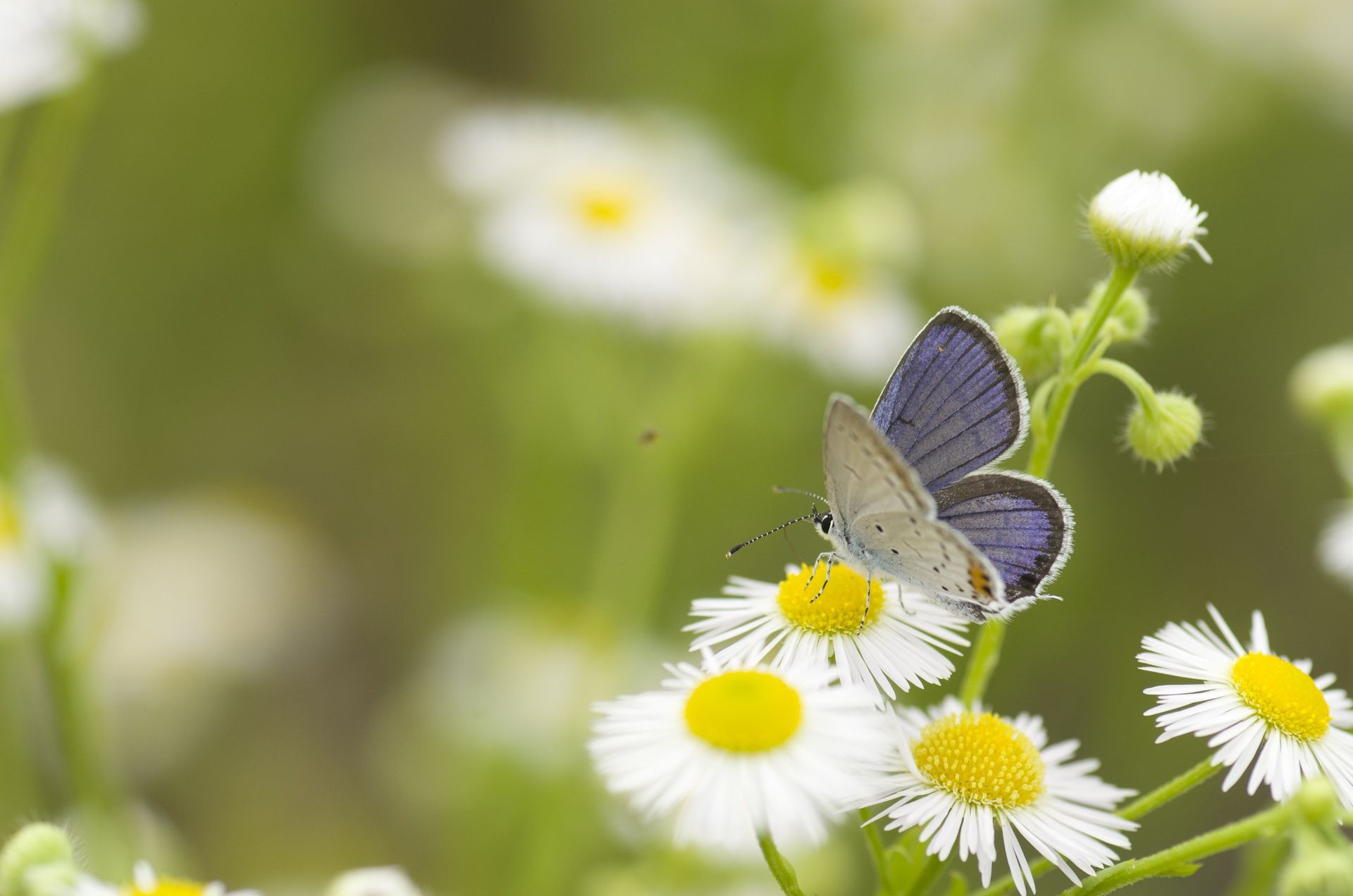 Schmetterling, der auf sommerblumen auf einer wiese sitztSchmetterling, der auf Sommerblumen auf einer Wiese sitzt