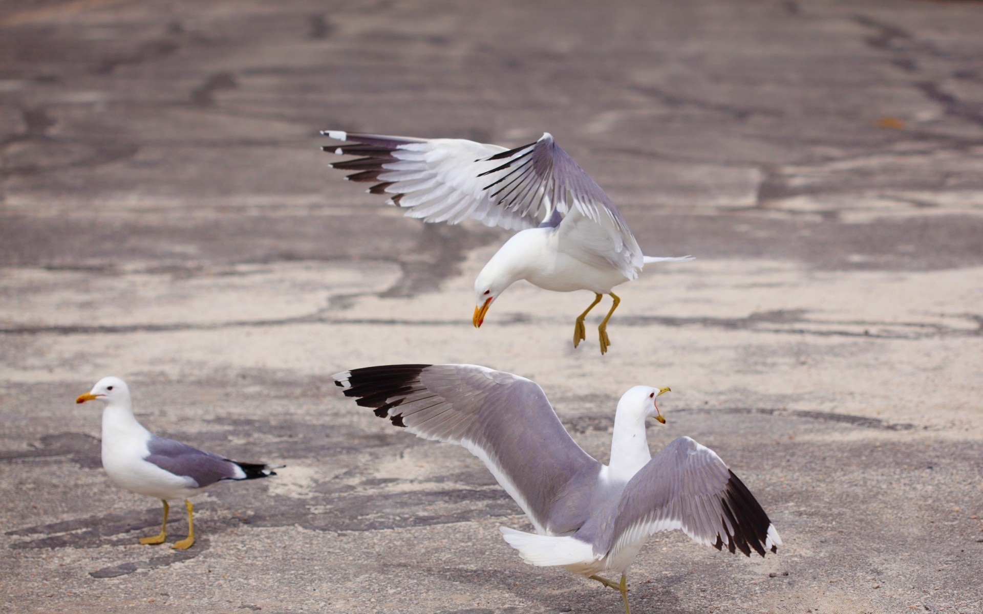 Schreiende Möwen an der Küste