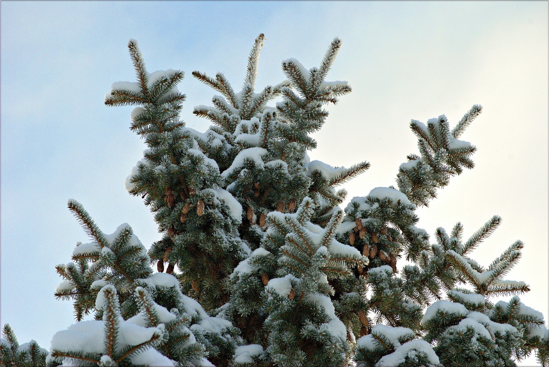 Schöne Kiefer, die mit Schnee bedeckt ist