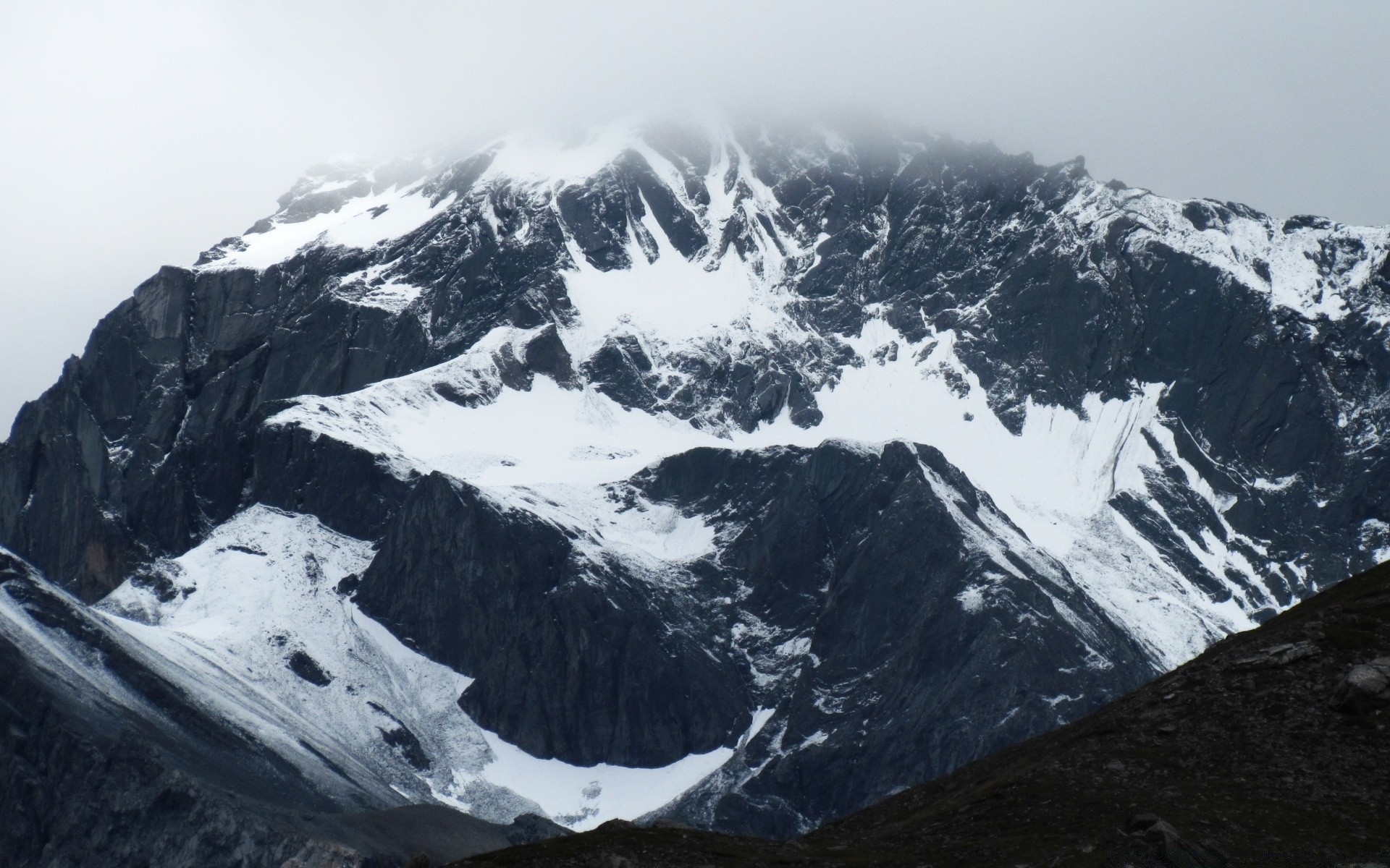 Blick von oben auf fichten im schnee und nebel darunterBlick von oben auf Fichten im Schnee und Nebel darunter