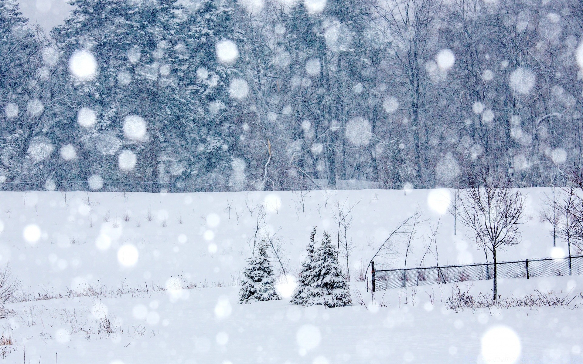 Sechs Weihnachtsbäume auf blauem Hintergrund