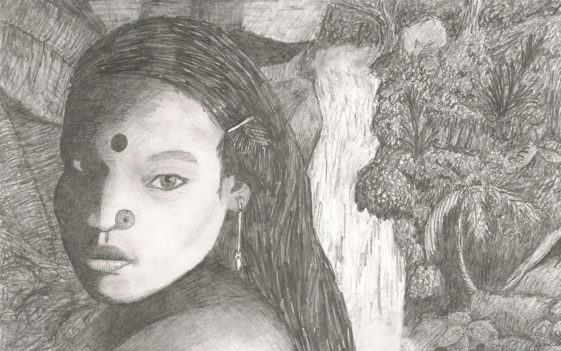 Schwarz-Weiß-Porträt eines Mädchens auf Naturhintergrund
