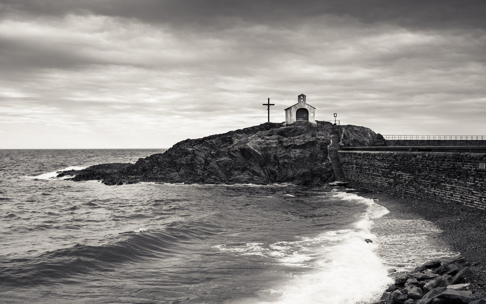 Spinnweben an der Fassade des Gebäudes in Schwarz-Weiß