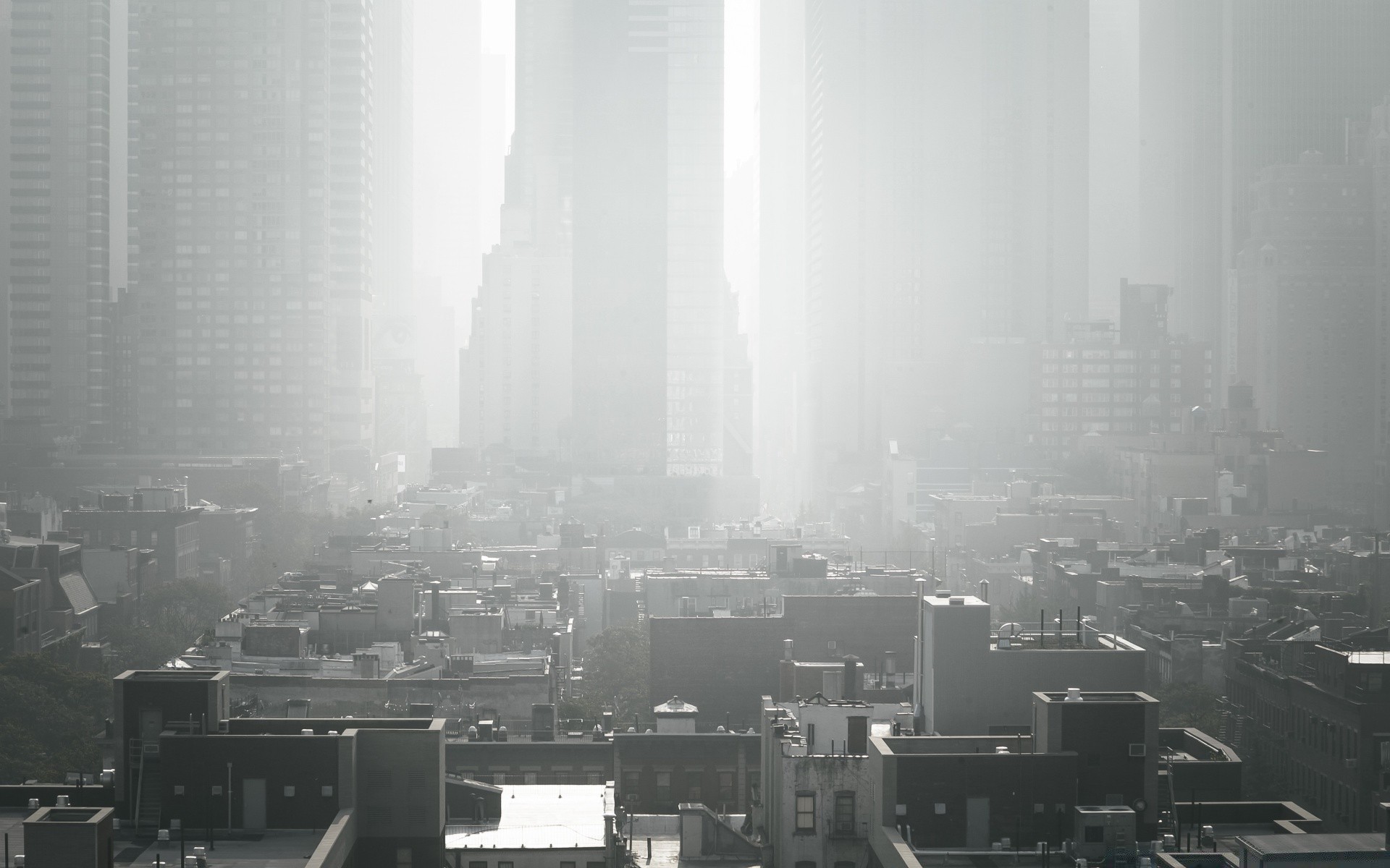 Schwarze weiße wolkenkratzer vor dem hintergrund der ganzen stadtSchwarze weiße Wolkenkratzer vor dem Hintergrund der ganzen Stadt