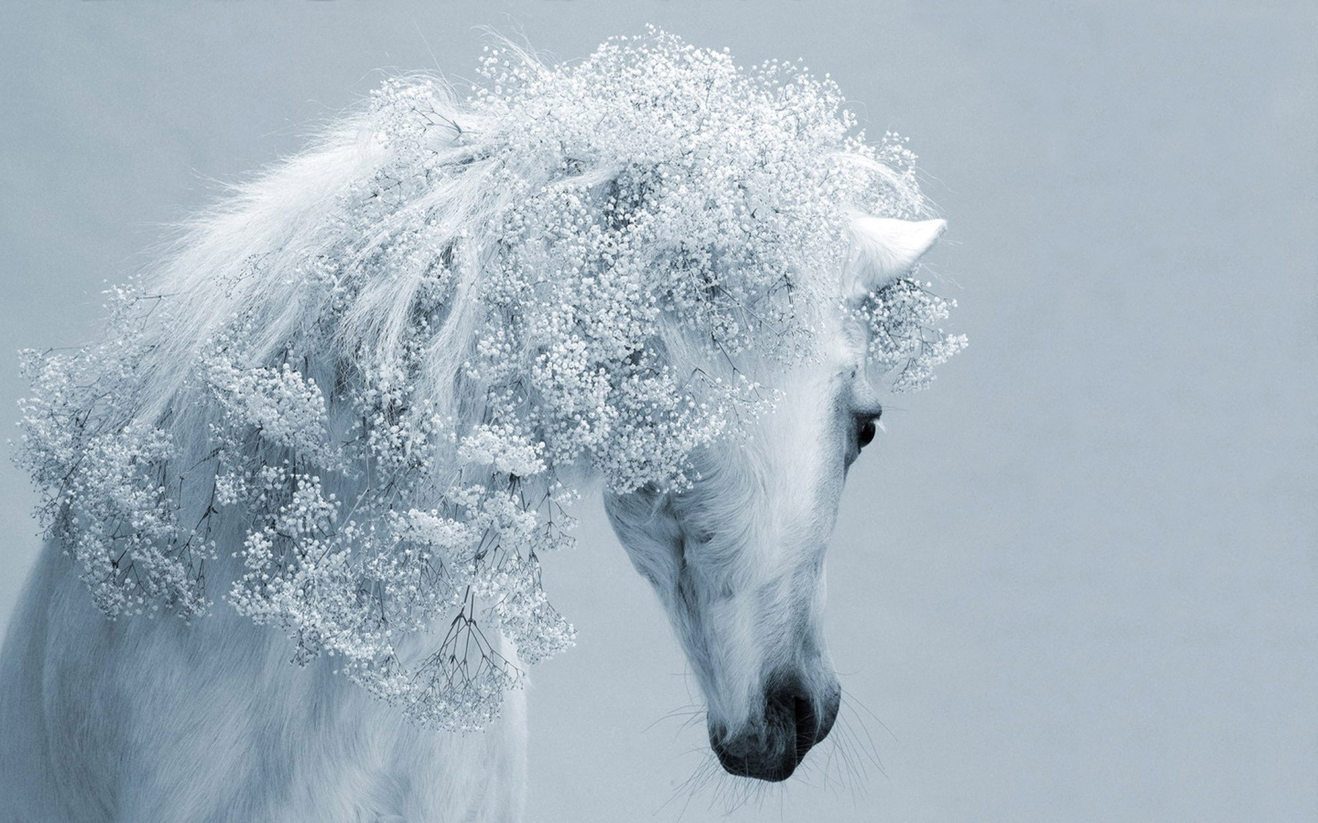 Weihnachten Pferd läuft auf blauem Hintergrund