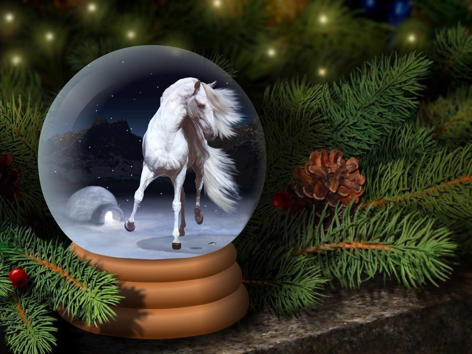 Weihnachtskugel mit Pferd im Weihnachtsbaum