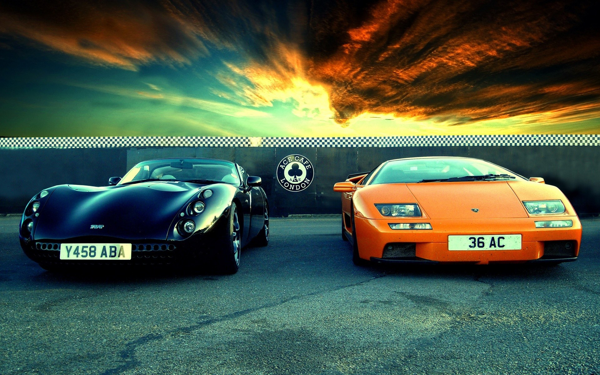 Zwei Luxusautos auf dem Hintergrund der Straße