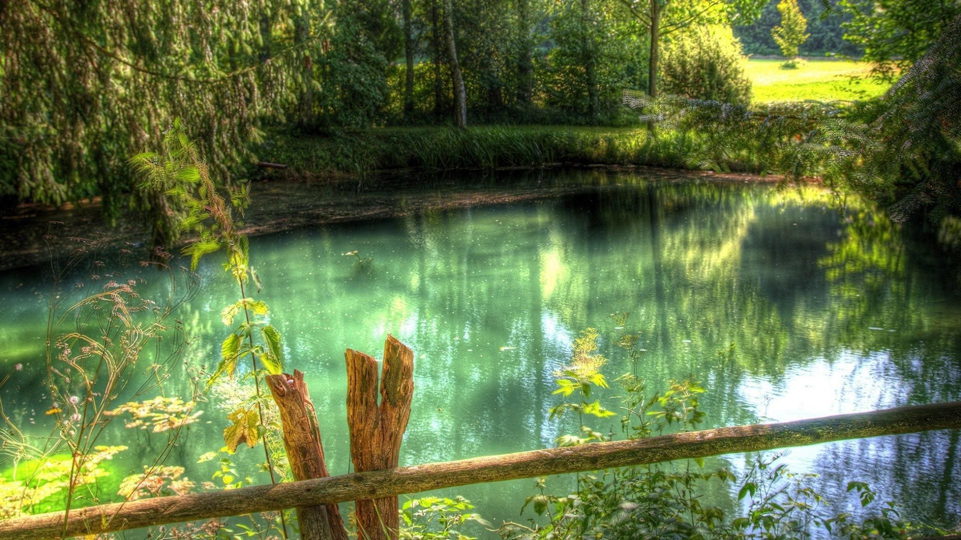 Ein teich im park mit einer ungewöhnlichen strukturEin Teich im Park mit einer ungewöhnlichen Struktur