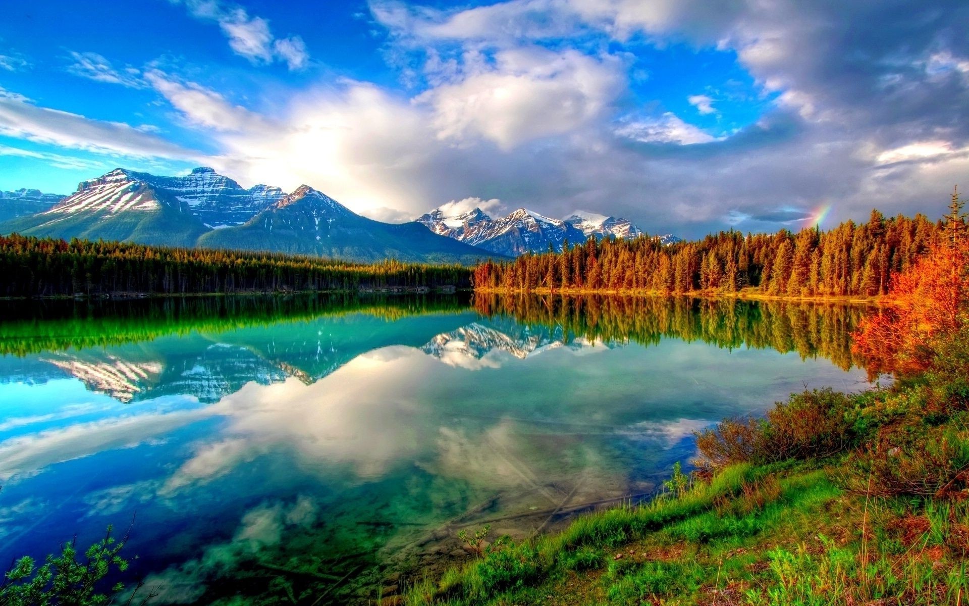 Bäume und Gras spiegeln sich im See wider