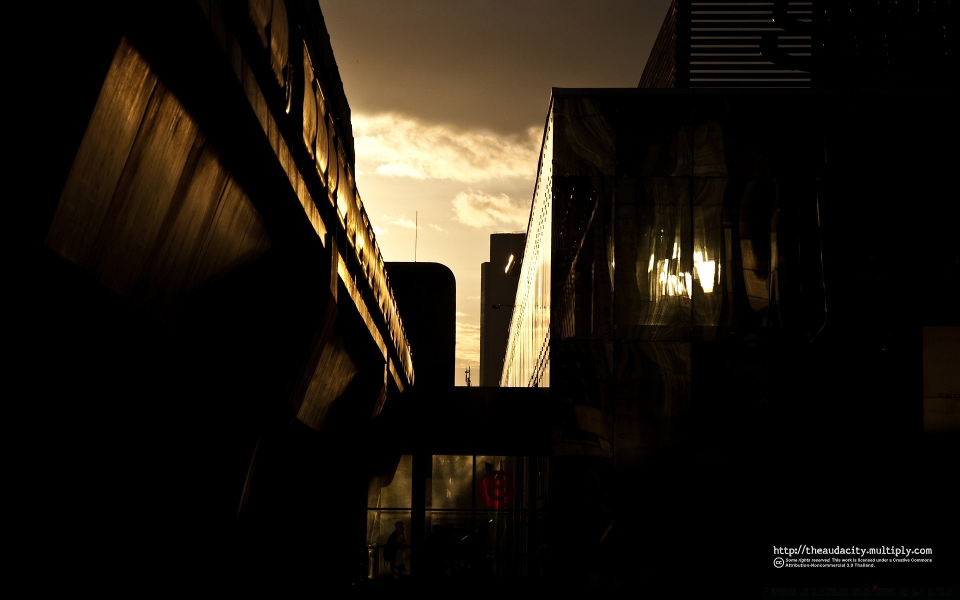 Dunkle silhouette einer anderen stadt bei sonnenuntergang bei strahlendem lichtDunkle Silhouette einer anderen Stadt bei Sonnenuntergang bei strahlendem Licht