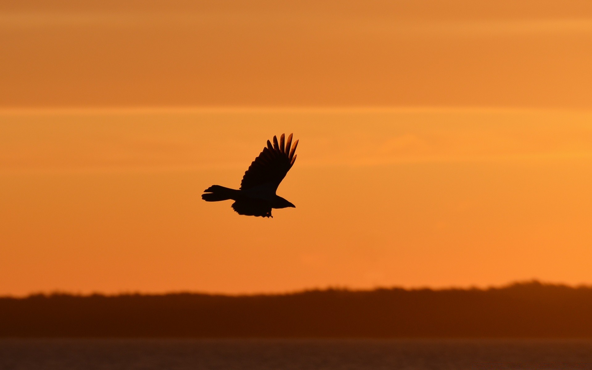 Silhouette eines Vogels am untergehenden Himmel