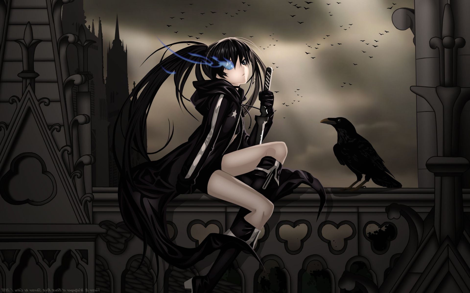 Zeichnung einer Hexe, die auf einem Balkongeländer sitzt