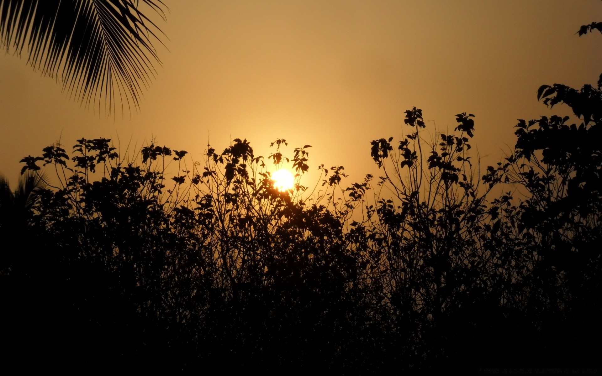 Der orangefarbene himmel und die bäume, die im schatten stehen, sind von erstaunlicher schönheitDer orangefarbene Himmel und die Bäume, die im Schatten stehen, sind von erstaunlicher Schönheit