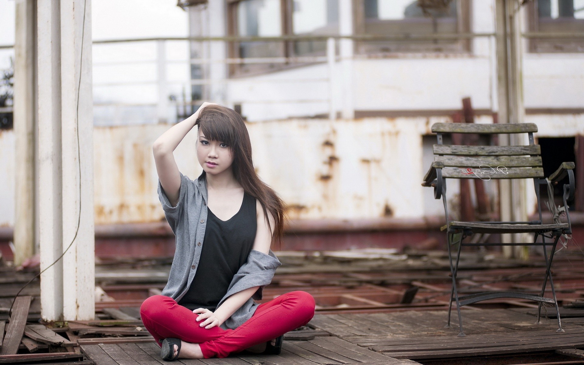 Straßenfoto eines Mädchens auf dem Hintergrund eines alten Zauns