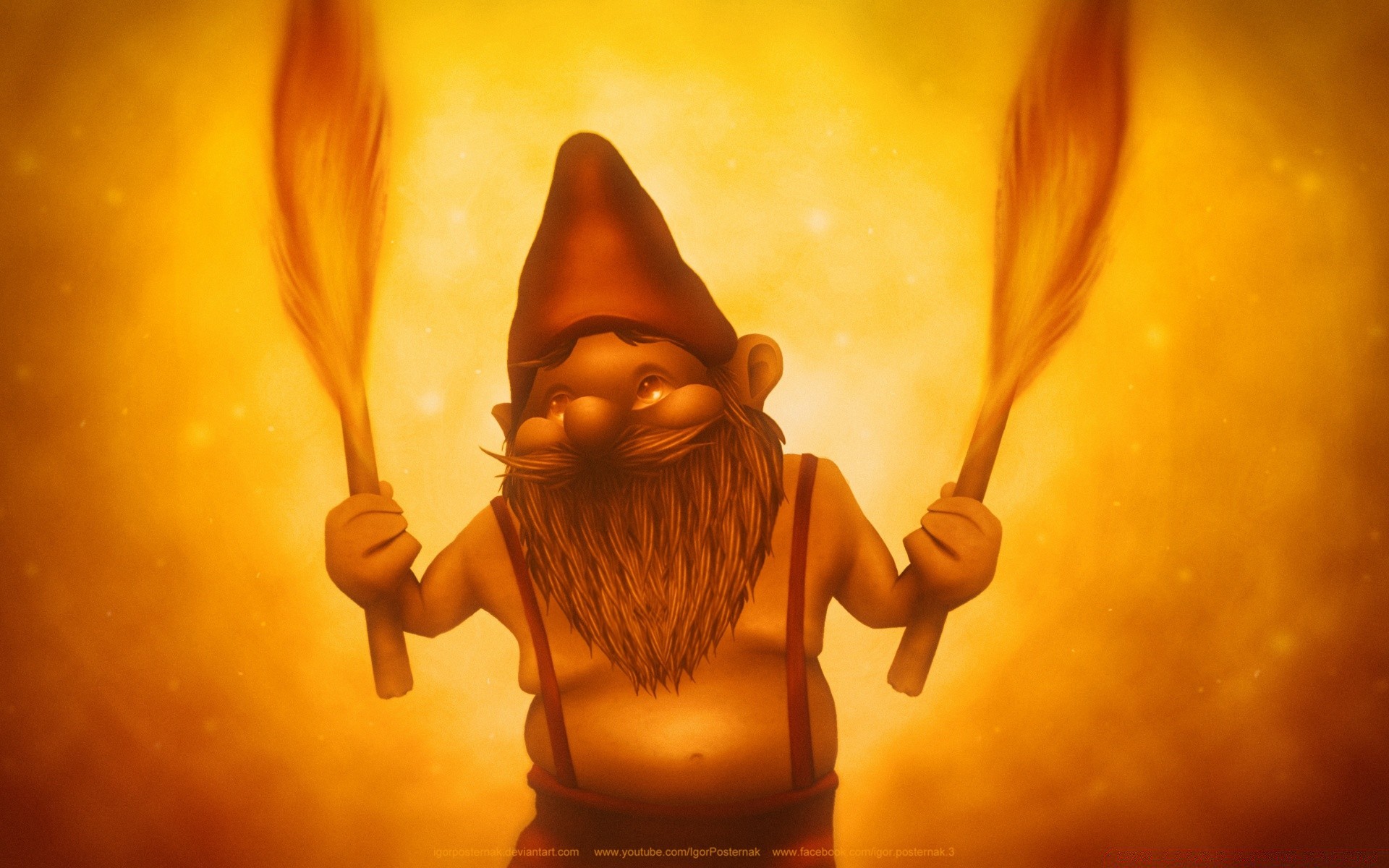 Eine Gnomskulptur mit Federn in den Händen
