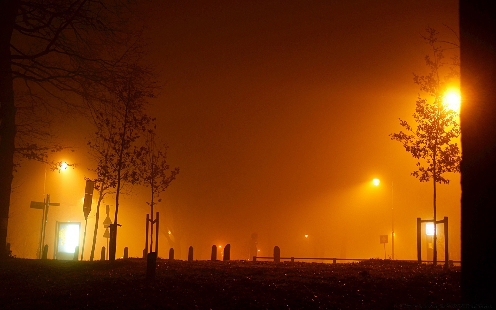 Sonnenuntergang in einem düsteren Himmel über den Hügeln