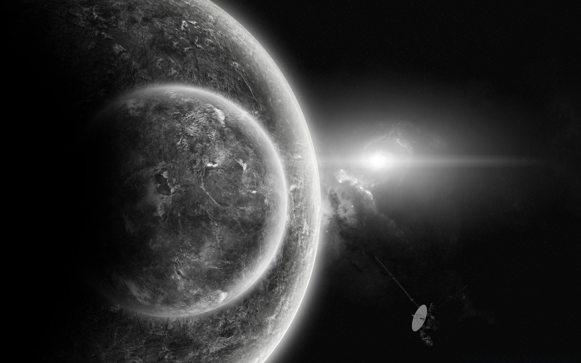 Schwarz-Weiß-Aufnahme des Mondes aus dem Weltraum