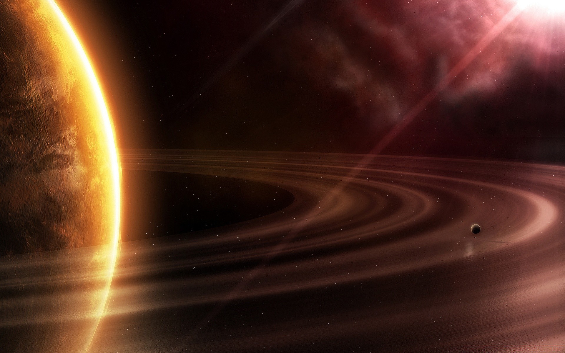Der Planet vor dem Hintergrund des hellen Schein der Sterne
