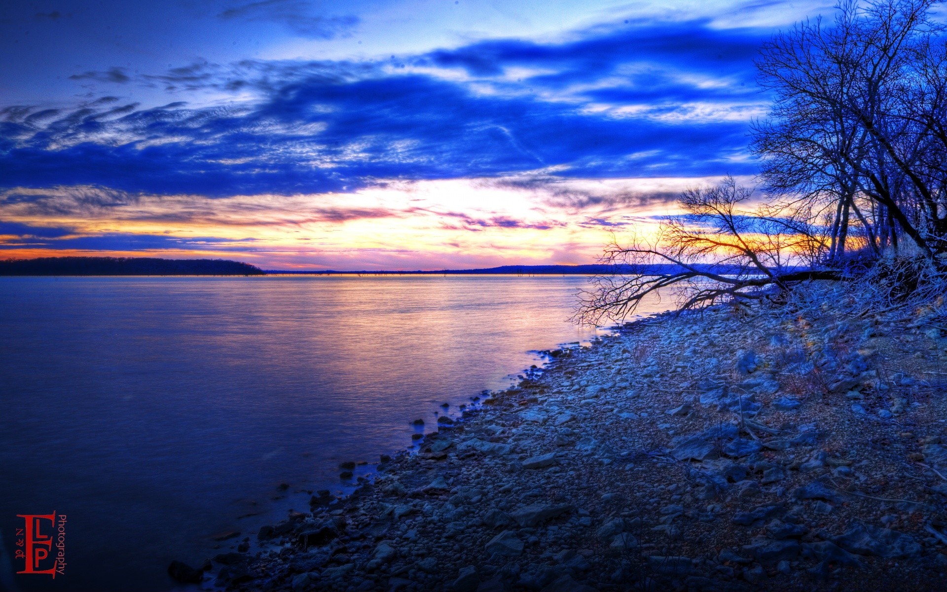 Reflexion von Sonnenuntergang und Morgengrauen im Wasser